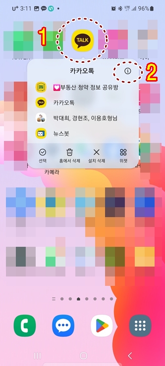 1. 카카오톡 어플 아이콘을 쿠욱 누르고 있으면 위와 같은 창이 뜹니다.