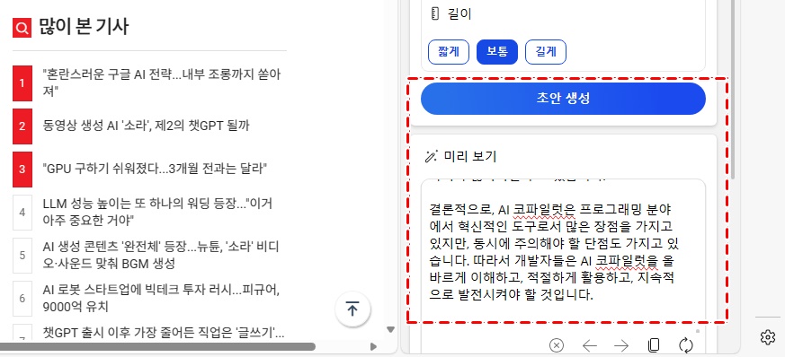 3. 코파일럿의 초안 작성 결과