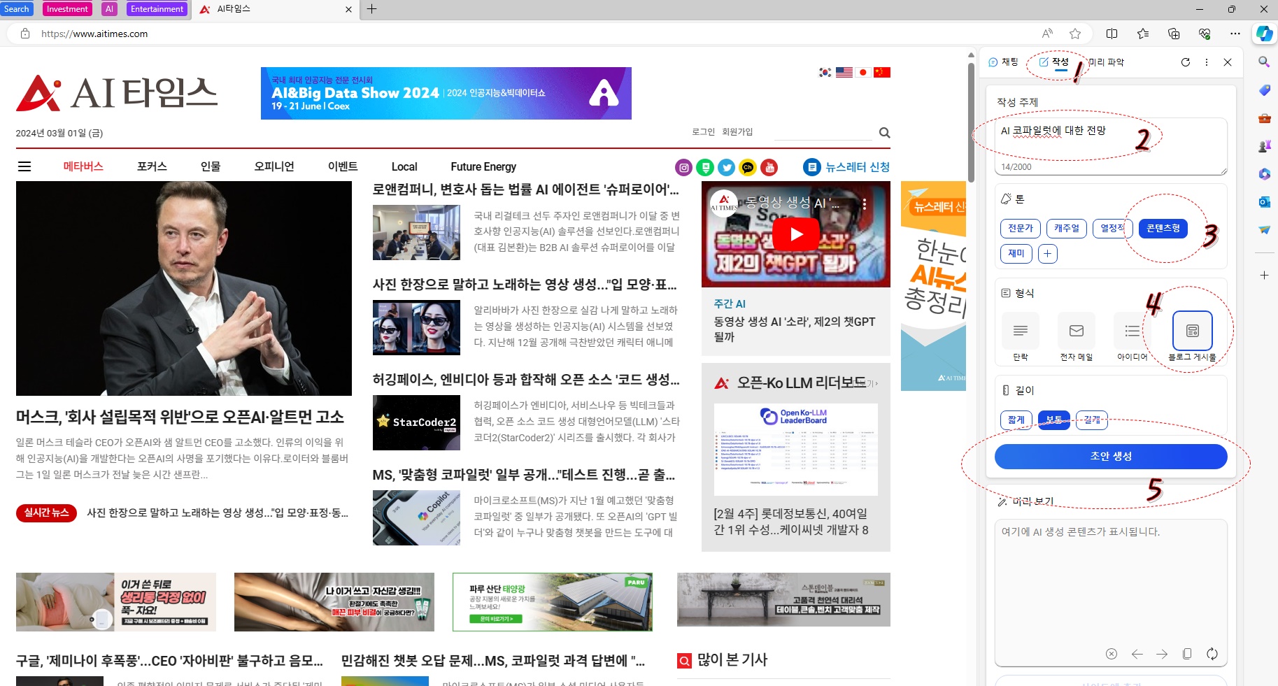 코파일럿으로 글을 작성하는 방법에 대해 알아보면서